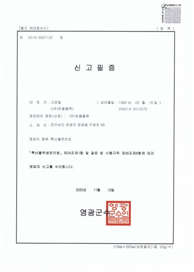 축산물운반(한울물류)
