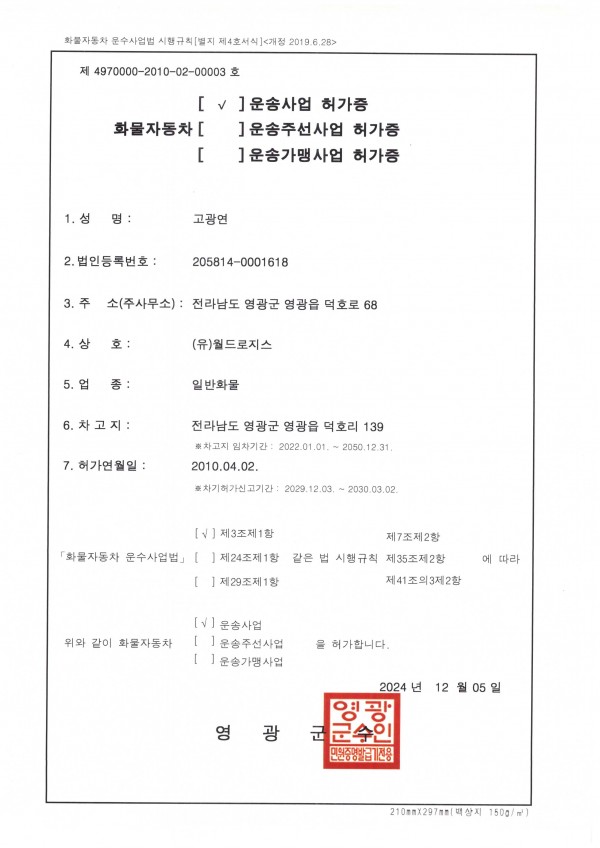 화물자동차운송사업허가증 화물자동차운송사업허가증(월드로지스) 페이지 정보 작성자 월드냉동 댓글 0건 조회 4회 작성일 26-03-10 20:05 본문 화물자동차운송사업허가증(월드로지스) 목록 이전글화물자동차운송사업허가증(한울물류) 26.03.10 다음글화물자동차운송사업허가증(월드냉동운수) 26.03.10